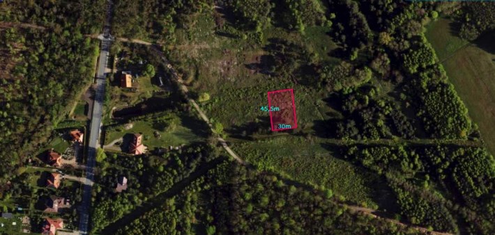 Szerokość działki 30m.