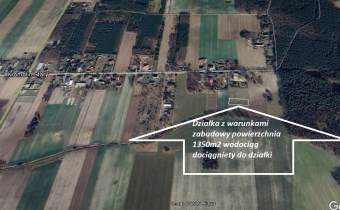 Działka z warunkami zabudowy (projekt warunków na zdjęciu) oraz podciągniętym wodociągiem na działkę
