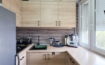►Kuchnia (Zabudowa kuchenna z płyta gazową, lodówka, zmywarka, okap)
